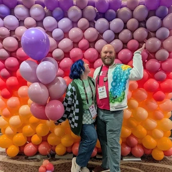 Teaming up with my husband Thomas, we navigate the world of balloons together full-time, joined by our weekend partner-in-fun, Jess, completing the dynamic Rockin' Robot Team